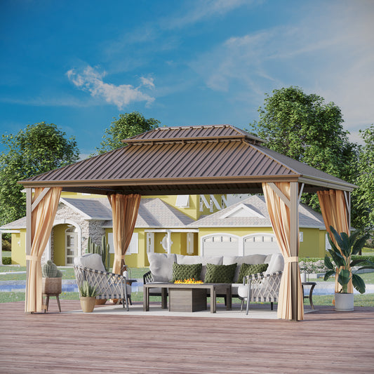 GAZEBEST 12x16 ft Hardtop Gazebo Outdoor Aluminum Patio Gazebo Double Roof Galvanized Steel Gazebo Canopy with Netting and Curtains,for Garden Patio,Patio Backyard,Deck and Lawns