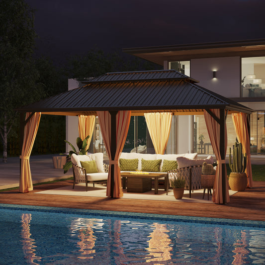 GAZEBEST 12x14 ft Hardtop Gazebo Outdoor Aluminum Patio Gazebo Double Roof Galvanized Steel Gazebo Canopy with Netting and Curtains,for Garden Patio,Patio Backyard,Deck and Lawns